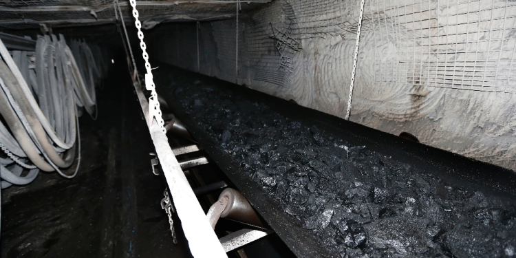 A conveyor belt transports tons of coal at a mine / ©AFP