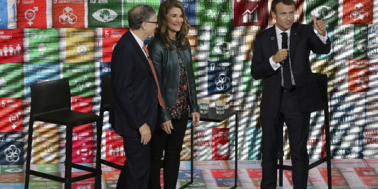 Melinda French Gates, pictured in 2018 with Bill Gates (left) and French President Emmanuel Macron, has pledged to use her fortune to help women and families / ©AFP