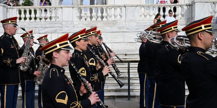 The US Army Band performs in honor of the Army's 250th birthday at the Tomb of the Unknown Soldier at Arlington National Cemetery -- ahead of a full military parade / ©AFP