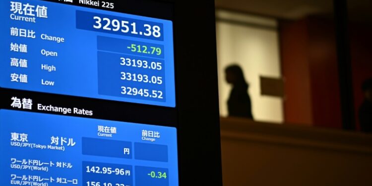 – Key figures around 2130 GMT – New York – Dow: DOWN 0.4 percent at 37,525.16 (close) New York – S&P 500: DOWN 0.2 percent at 4,756.50 (close) New York – Nasdaq: UP 0.1 percent at 14,856.71 (close) London – FTSE 100: DOWN 0.1 percent at 7,683.96 (close) Frankfurt – DAX: DOWN 0.2 percent at 16,688.36 (close) Paris – CAC 40: DOWN 0.3 percent at 7,426.62 (close) EURO STOXX 50: DOWN 0.4 percent at 4,467.17 (close) Tokyo – Nikkei 225: UP 1.2 percent at 33,763.18 (close) Hong Kong – Hang Seng Index: DOWN 0.2 percent at 16,190.02 (close) Shanghai – Composite: UP 0.3 percent at 2,897.34 (close) Euro/dollar: DOWN at $1.0934 from $1.0950 on Monday Dollar/yen: UP at 144.48 yen from 144.23 yen Pound/dollar: DOWN at $1.2710 from $1.2748 Euro/pound: UP at 86.00 pence from 85.89 pence Brent North Sea Crude: UP 1.9 percent at $77.59 per barrel West Texas Intermediate: UP 2.1 percent at $72.24 per barrel burs-jmb/md