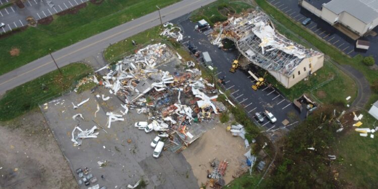 Tennessee has been the hardest hit, with 10 deaths recorded in the western part of the state. Kentucky and Missouri each report two deaths, while Arkansas, Indiana, and Mississippi each count one, with tolls that could still rise. In Jeffersontown, Kentucky, buildings were left destroyed by a reported tornado, an AFP correspondent saw.