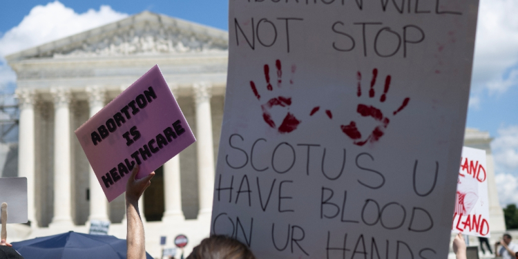 Abortion rights demonstrators rally to mark the first anniversary of the US Supreme Court ruling in the Dobbs v Women's Health Organization case in Washington, DC on June 24, 2023 / ©AFP