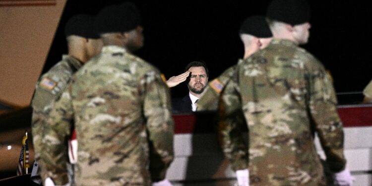 Vance, who declined to answer questions from the press, was joined by Pentagon chief Pete Hegseth and General Dan Caine, chairman of the joint chiefs of staff, at Dover Air Force Base in the eastern state of Delaware. During the ceremony, uniformed soldiers silently carried a flag-draped coffin from a C-17 aircraft to a transfer vehicle while Vance, Hegseth, and Caine saluted. Six other fallen soldiers — five men and one woman — have been returned to US soil.