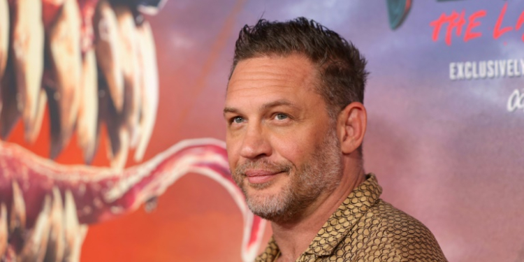 Tom Hardy, star of 'Venom: The Last Dance,' is seen before a poster of the film at its New York premiere on October 21, 2024 . ©AFP