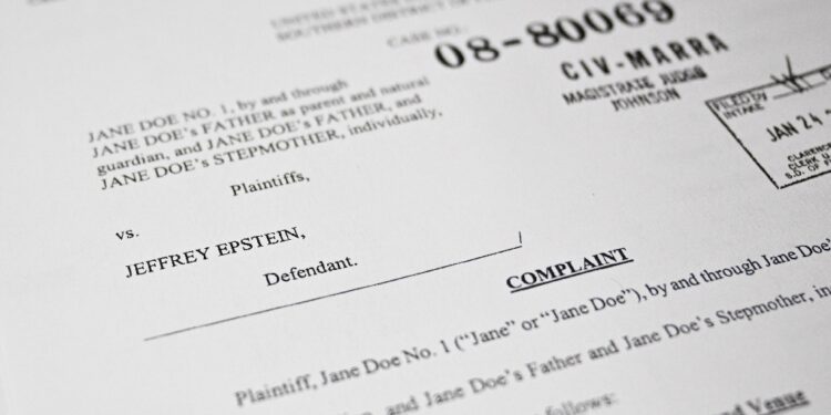 A court document in one of the dozens of civil cases filed by victims against convicted sex offender Jeffrey Epstein / ©AFP