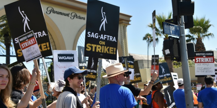 Members of the SAG-AFTRA actors' union demonstrate outside Paramount Studios in Los Angeles on July 14, 2023. ©AFP
