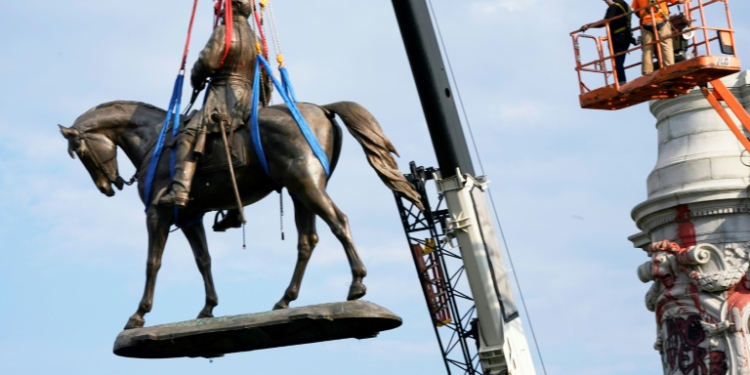 A statue of Confederate General Robert E. Lee was removed from its pedestal in Richmond, Virginia. ©AFP