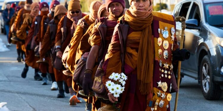 Glen Allen (United States) (AFP) – Buddhist monks walking from Texas to Washington to promote peace have become a surprise popular hit as they near the US capital — attracting crowds of thousands who line the route or join in for a few miles. At a time of strife and political tension in the United States, the monks offer a change of tone on their 2,300-mile (3,700-kilometer) odyssey across eight states through freezing temperatures and along ice-covered roads.