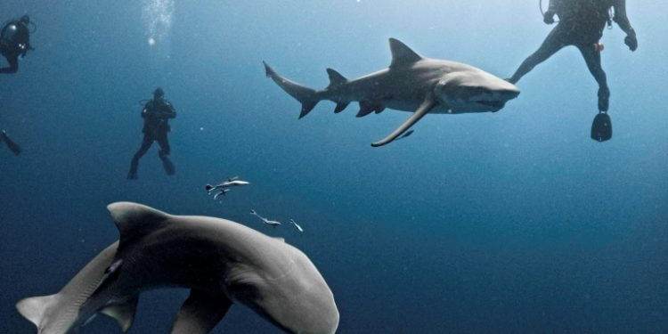 Some humans meanwhile are seeking out sharks. In Jupiter, some 90 miles (150 kilometers) north of Miami, Jonathan Campbell has done more than 500 dives with a coterie of enthusiasts, all there to swim with sharks.