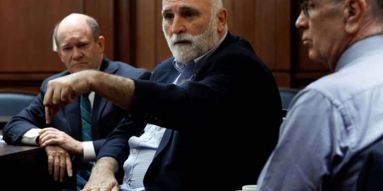 Jose Andres after a March meeting in Washington on getting humanitarian aid to Gaza. ©AFP