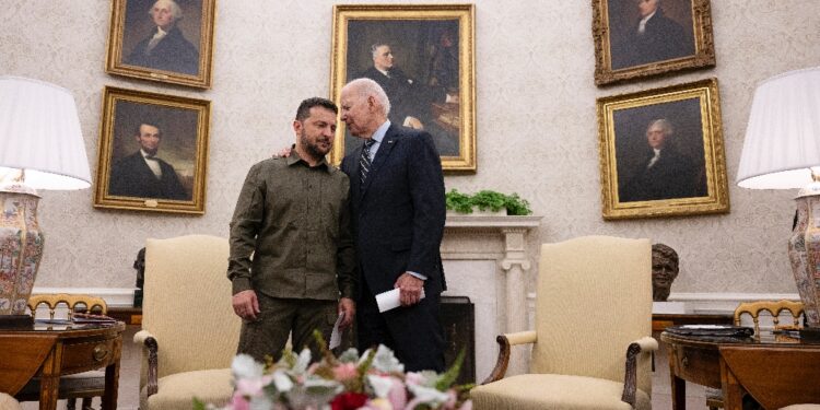 Ukrainian President Volodmyr Zelensky won pledges of unstinting support and air defense weapons from President Joe Biden on Thursday, but he warned that Russia could still defeat Kyiv if Republican lawmakers cut US military aid.